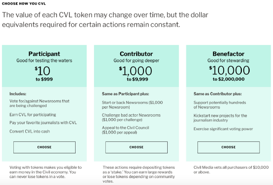 CVL is a uniquely designed cryptocurrency that will drive the governance of a community-controlled platform for ethical journalism. It will also serve as a peer-to-peer payments system that will allow readers to directly support journalists publishing on the Civil platform.